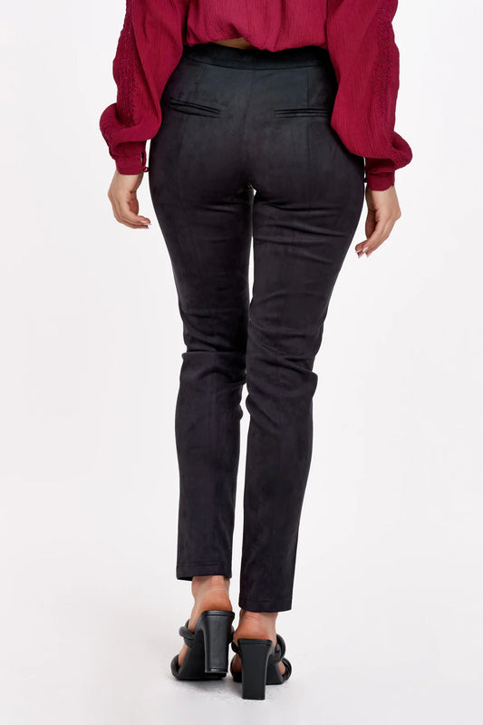 LENON SUPER HIGH RISE SLIM STRAIGHT PANTS BLACK SUEDE