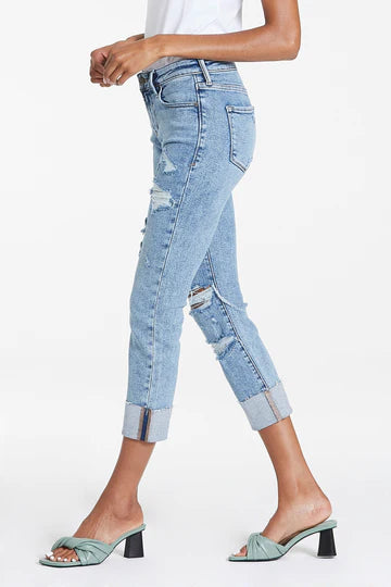 BLAIRE HIGH RISE CUFFED SLIM STRAIGHT GLASS BEACH JEANS