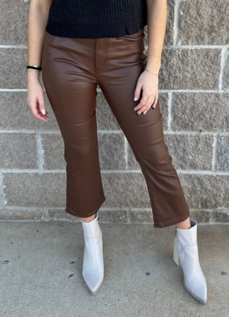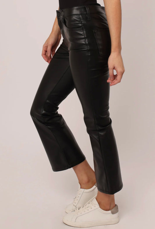JEANNE HIGH RISE CROPPED FLARE PANTS BLACK VEGAN LEATHER