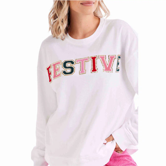 Simply Southern FaLaLa Crew Neck Sweatshirt Pink