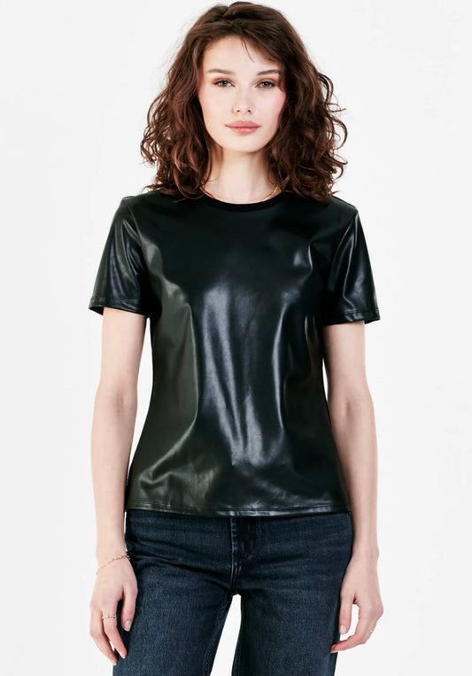 REESE MIX MEDIA VEGAN LEATHER TOP BLACK